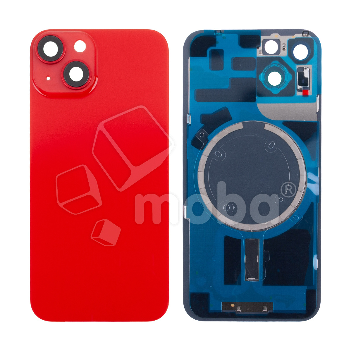 Задняя крышка для iPhone 14 (A2883) в сборе со стеклом камеры Красный (стекло, монолит, MagSafe, логотип) - Премиум